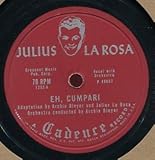 EH, CUMPARI / TILL THEY'VE ALL GONE HOME by JULIUS LA ROSA, ORCHESTRA CONDUCTED BY ARCHIE BLEYER /CADENCE 1232 /78 rpm RECORD Here for your delectation is the SPECTACULAR & RARE------------------EH, CUMPARI / TILL THEY'VE ALL GONE HOME by JULIUS LA ROSA, ORCHESTRA CONDUCTED BY ARCHIE BLEYER /CADENCE 1232 /78 rpm RECORD.THIS ITEM IS NOT AVAILABLE ANYWHERE!!Julius La Rosa (born January 2, 1930) is a popular music singer who has worked in both radio and television since the 1950s.Archie Bleyer, Arthur Godfrey's bandleader, formed Cadence Records in 1952. The first performer signed was La Rosa, who would hit gold with his third recording, "Eh, Cumpari" in 1953. La Rosa got an award as the best new male vocalist of 1953.HIGHLY RECOMMENDED!!!***CAVEAT FOR PURCHASERS OF 78RPM RECORDS FROM BARRY'S BARGAIN BIN***(1) These records are very old--always fifty to ONE HUNDRED years or more; (2) As such, the recording quality is never more than acceptable--especially in comparison to Hi-Fi, Stereo, and Digital recordings. These are always noisy, with clicks, pops, etc.; (3) If I notice a substantial scratch under normal light, I will mention it in the ad; but I have not played these records and have no idea whether they will be suitable to your requirements. They are offered as COLLECTIBLE items. (4) Hence, NO RETURNS WILL BE ACCEPTED--FOR ANY REASON!This leads to an explanation of shipping. I have, in the distant past mailed 78rpm records worldwide, with less than satisfactory results. Since these records were made of shellac, a considerable amount of breakage ensued. I have been informed that major shipping companies--UPS, FEDEX, et al.--are prepared to handle these items and guarantee success in delivering them. The approximate cost to ship one record in the US is (with minor variations concernings zip codes). That will cover all shipping and handling costs--including insurance and tracking. International shipping will require a specific and higher quote. I (and my customers) seek guaranteed hassle-free delivery and assurances from trusted shipping companies.